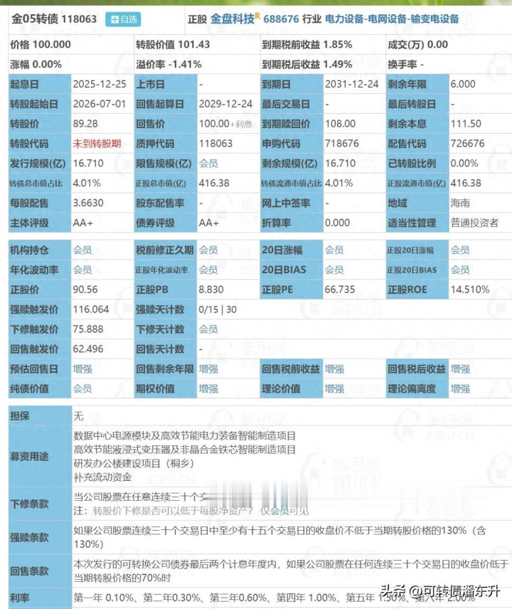 股权基金杠杆 12月25日, 金05转债申购分析!